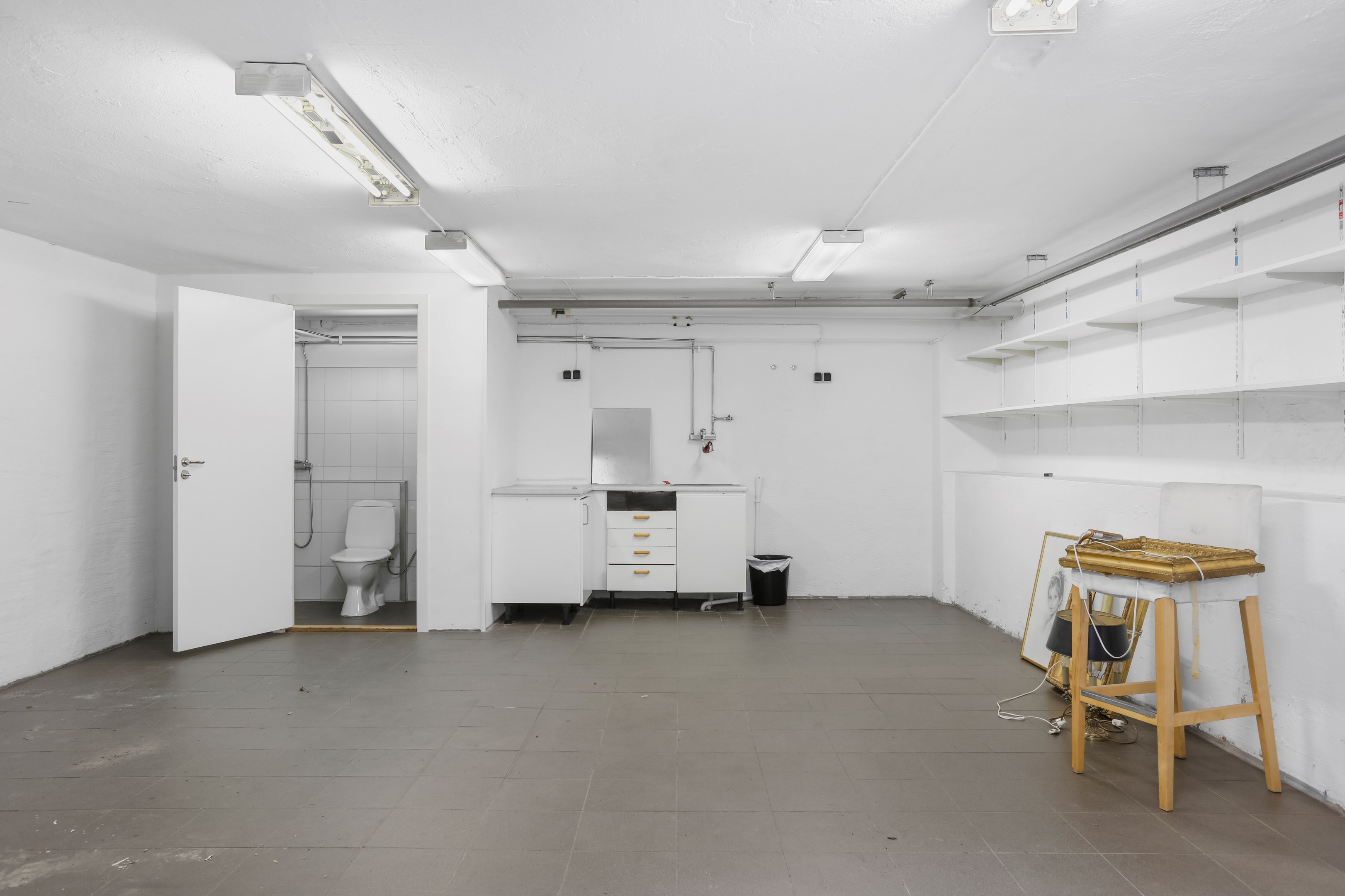 Ett förråd åer lägenhet finns på vinden.